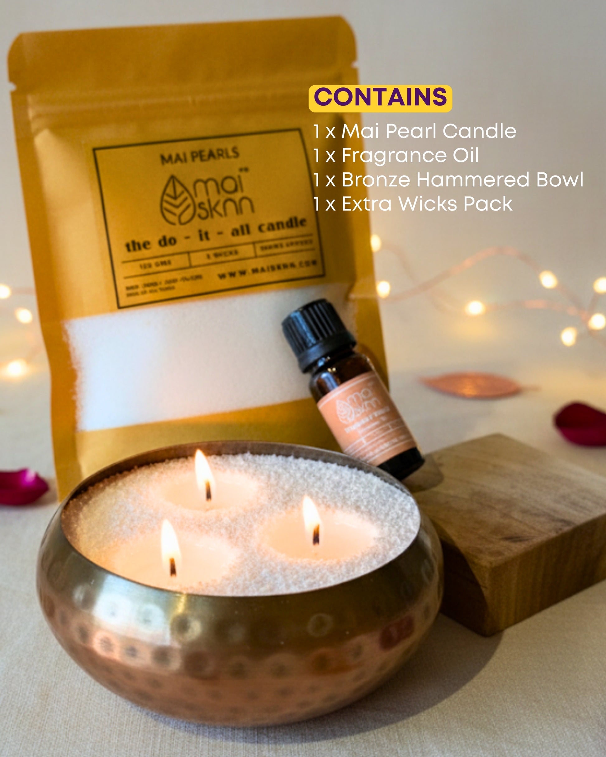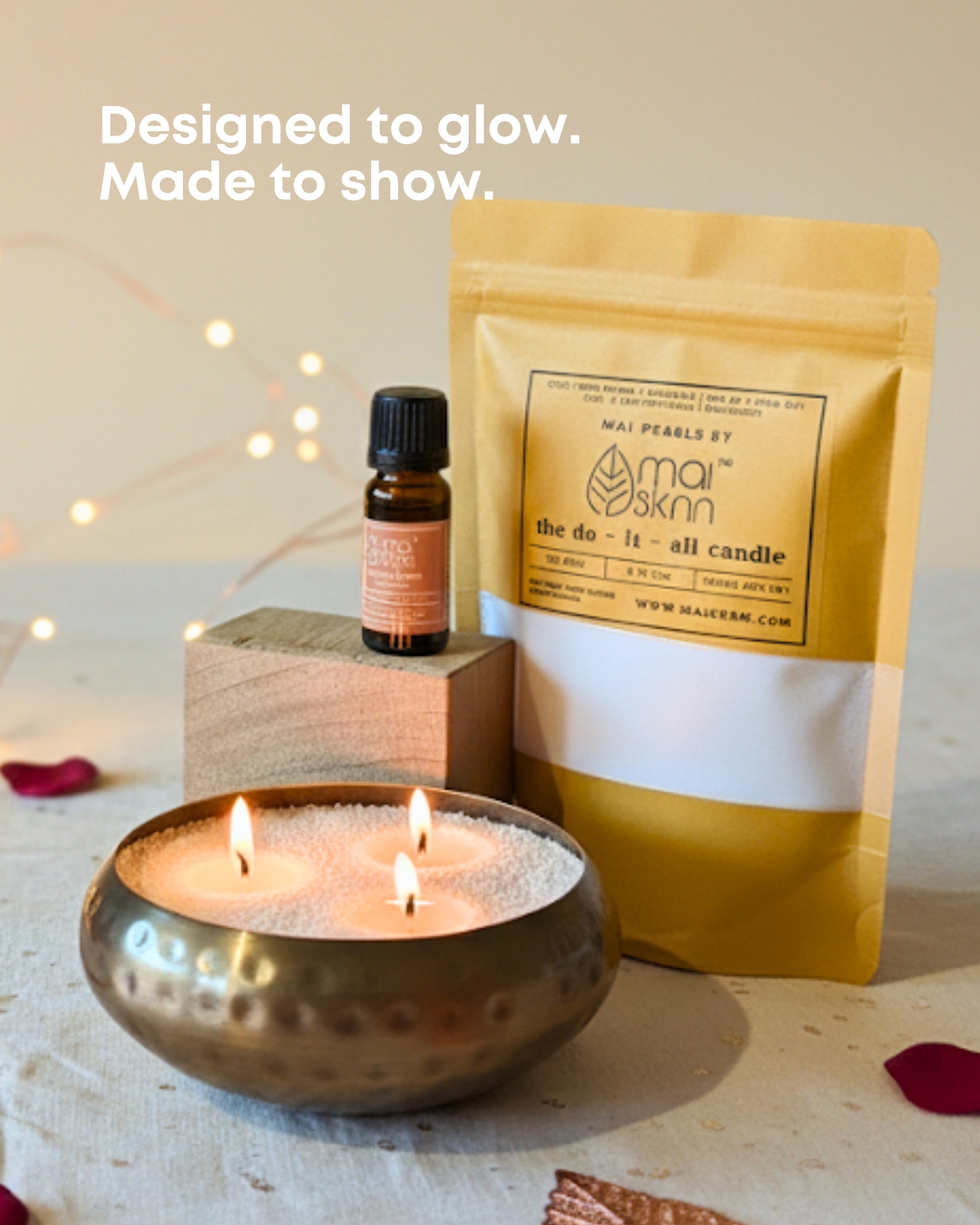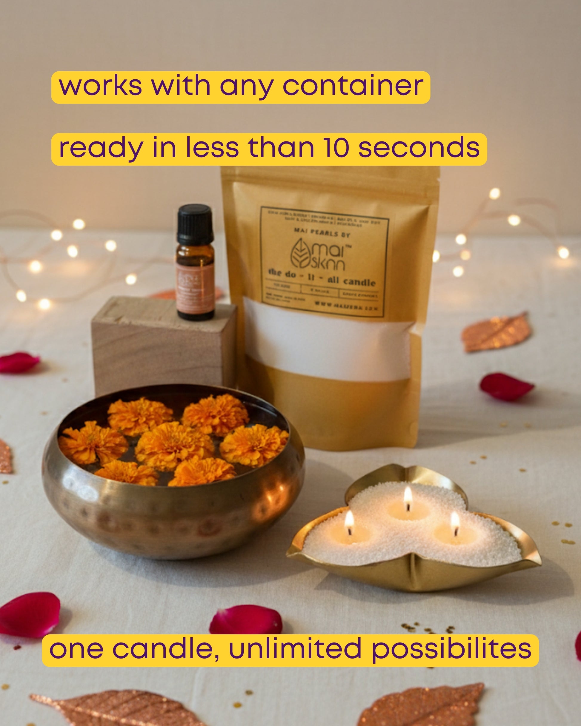 You're free to drop the Mai Pearls into whatever container tickles your fancy, any shape, any amount. Slide in just one wick or go nuts with a whole bundle. Mix and match two colors to create your own groovy design. And hey, they even on float on water! The options? Infinite!